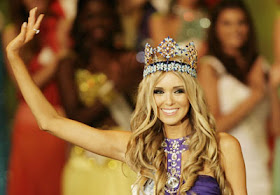 Ksenya Sukhinova (C) of Russia smiles after being crowned Miss World at the Sandton Convention Center in Johannesburg on December 13, 2008.